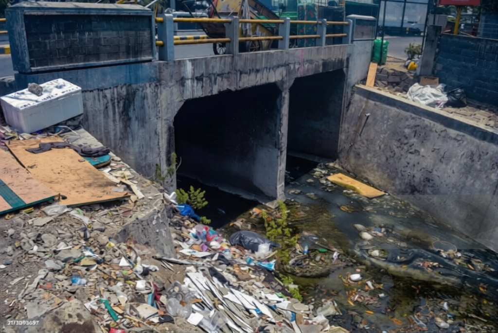Climate risk is amplified by how cities handle waste, drainage, and materials.